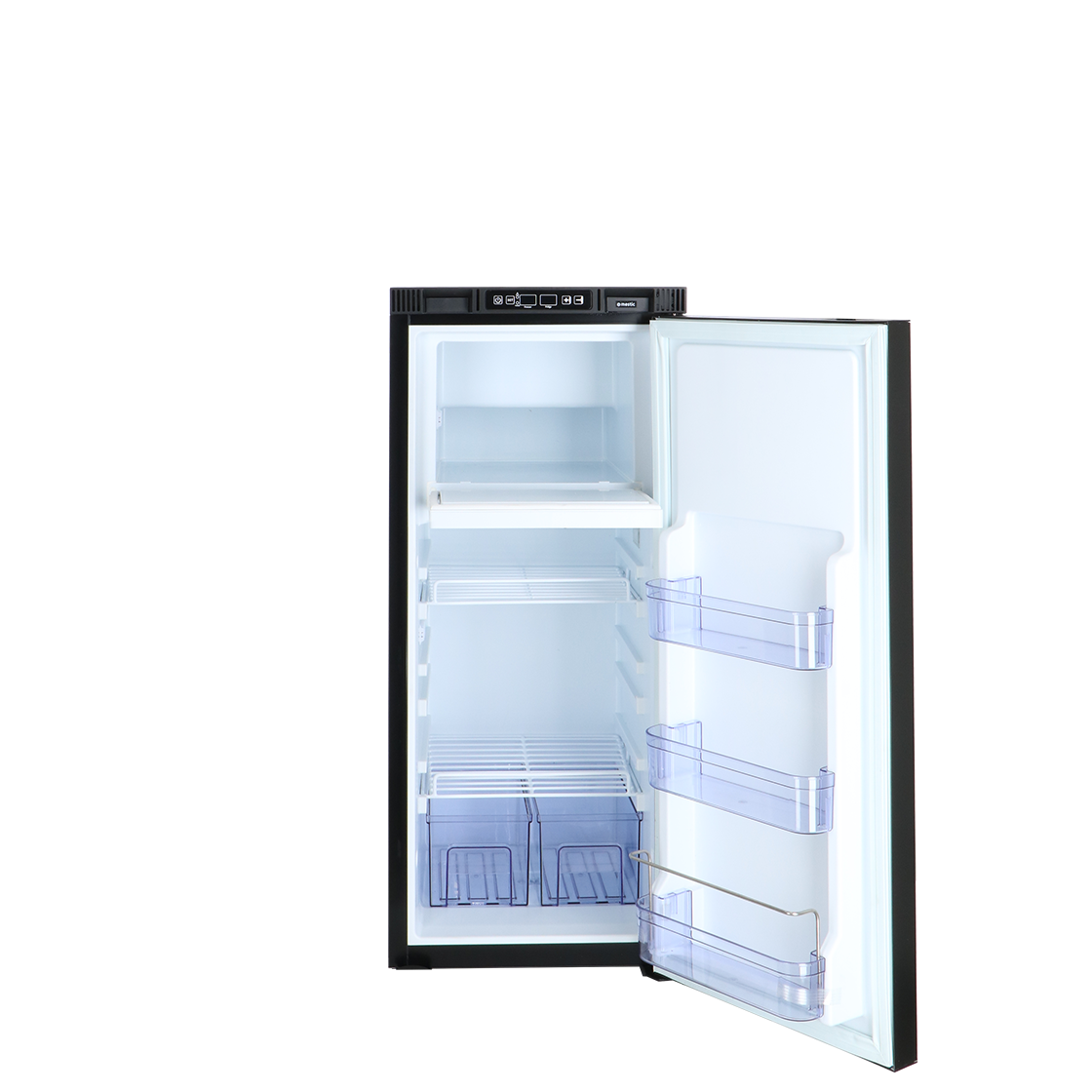 Det slanke kompressorkøleskab er ideelt til campingbrug og kan nemt installeres i din autocamper eller campingvogn. Døren har et integreret håndtag og kan monteres, så den åbner til venstre eller højre efter ønske. Den robuste dørlås sikrer, at døren ikke åbner under kørslen. Derudover bruger køleskabet det miljøvenlige kølemiddel R600a, som køler effektivt med lavt energiforbrug.